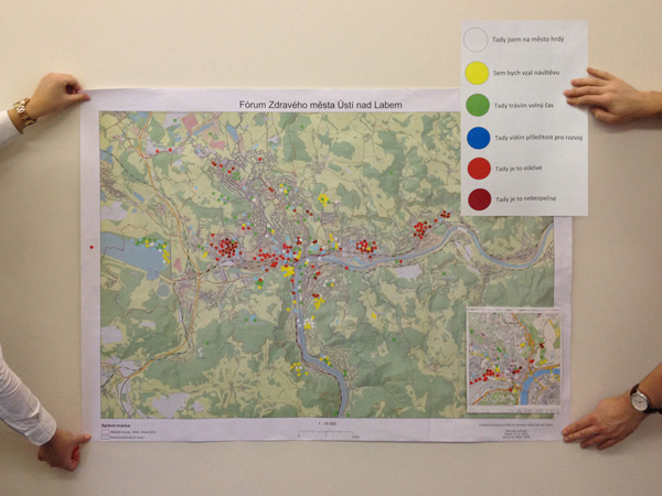 Na podzimním Fóru Zdravého města Ústí nad Labem dostali občané města příležitost vyjádřit se k situaci v Ústí nad Labem pomocí konceptu mentálních map, konkrétně pocitové mapy. Snahou bylo občanům města nabídnout zajímavý prostředek k identifikaci problémů a příležitostí spojených s konkrétním prostorem. Tento výstup bude využit jako jeden ze vstupů pro implementaci Strategie rozvoje města Ústí nad Labem 2015-2020.